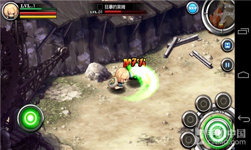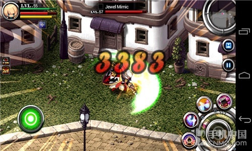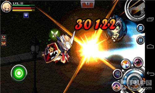 与一般ARPG游戏类似,泽诺尼亚创奇5通过左侧的摇杆来控制方向,双击摇杆可以控制角色突击,右侧包括了普通攻击键以及四枚技能快捷键。四个 技能快捷键可以通过滑动切换到另外四枚,笔者的心得是将主动攻击技能放在前四个位置,后四个位置放置时效性的增益魔法,这样的组合可以让你变得更有战斗 力。