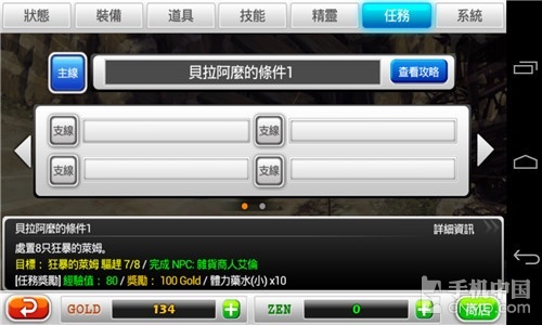 作为一款ARPG游戏,泽诺尼亚传奇5的有系统非常强大,任务系统走得是傻瓜路线,所有交任务和接任务都像魔兽世界一样,看人物脑袋顶上的 “!”号,而且任务执行的地区在地图上也有标记,普遍任务都是刷怪,未免有点乏味,好在游戏的战斗过程比较出色,有足够的乐趣让我们维持下去,这方面泽诺 尼亚传奇5应该学学地牢猎手4,让用户可以从任务中体验到更多内容。