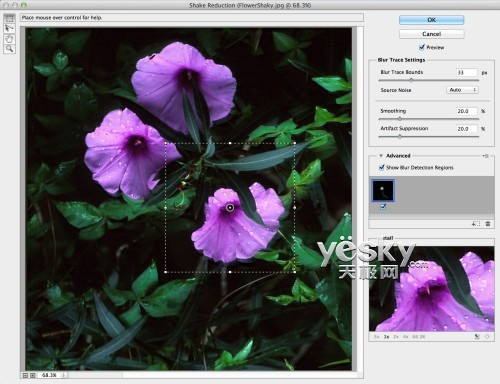 智能采样无损放大照片这项Phothoshop CC加入的全新功能为用户扩大照片时提供无损失的插值效果,不会因为图片放大操作而损失画质。