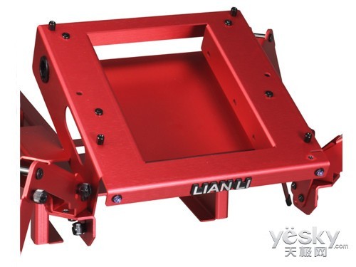显卡、声卡等设备可以固定在这个专门设计架子上,架子由有机塑料制成,十分坚固,即使抓住它将整个机箱提起亦不会有大碍。这里Skeleton没有使用免工具设计,需像普通机箱一样使用螺丝固定,不过这样可以尽可能避免兼容性问题。