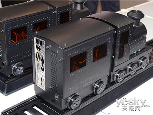 当我们在孩童的时候都喜欢玩具,火车模型是其中一种。联力这次大发童心,给我们带来了一款 CK-101机箱,这个机箱的造型居然就是火车模样。这个机箱具备了硬盘位,一个光驱,还有USB 3.0 接口;最夸张的是,它还能冒蒸汽,真的是惟妙惟肖。现在还不知道这款火车机箱是怎么样实现跑动的,是内置了电池还是通过外围供电方式;也不知道接口要怎么 使用,那些线缆要怎么接驳。当然对于那个冒蒸汽的效果我们也很好奇。