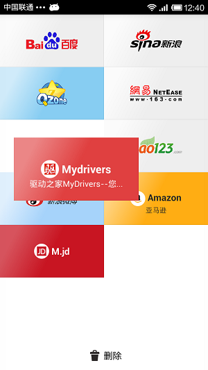 打开网页后按菜单键可将当前页面快捷的添加至首屏