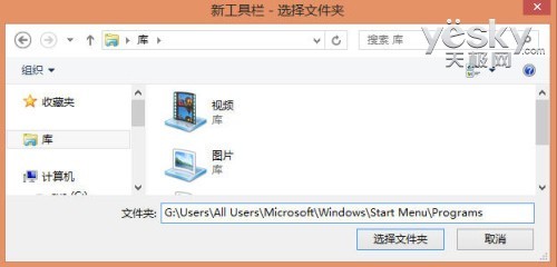 比如当前的Win8系统盘是G盘,我们就输入“G:\Users\All Users\Microsoft\Windows\Start Menu\Programs”。