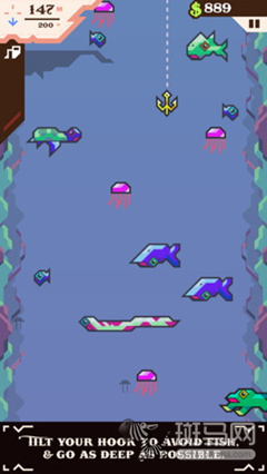 《滑稽钓鱼 Ridiculous Fishing》包含了数个海域,解锁新海域的条件是在当前海域捕获到足够类型的鱼,而在新海域则有更丰富的类型等着玩家去搜索,甚至可能会出现具有攻击性的鲨鱼,收集鱼类图鉴也是游戏的一个部分,对于玩家有极大的挑战诱惑。