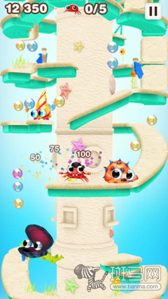 这款游戏的背景虽然不在海里,好在主角螃蟹是海里的生物,有很多场景也跟海洋有关,总体来说还是跟海贴的很近。游戏融入了传统游戏元素和街机动作游戏的要素,3D版画面的螃蟹看起来非常立体。游戏里有很多种不同主题的旋转塔,有沙滩,树林,冰川,藏宝塔等等,每个不同风格的关卡都有想对应的小怪物出没,比如沙滩关卡出现的是刺豚和贝壳,相当有特色。
