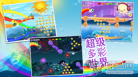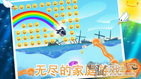 收集金币的时候也并不是一帆风顺的,在前进的过程玩家会遇到各种个样的阻碍和难关,除了主角小海豚以外,还有很多可爱的角色供大家选择,虎鲸,水獭,海龟等,多种有趣的角色。