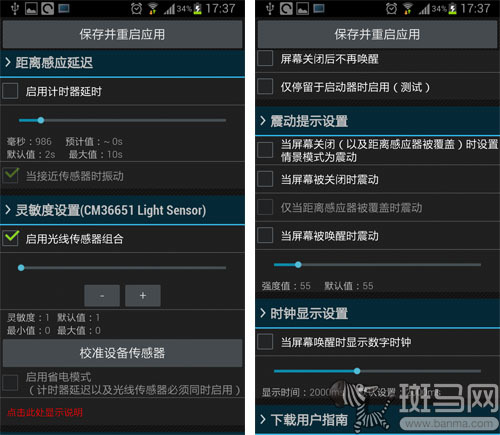 以《智能锁屏》(Smart Screen Off)为例,安装后会出现两个图标,其中点击进入“齿轮”图标可进行相关具体设置。至于另外一个图标则是用于开启该功能的快捷按钮。在应用的默认设置 下,只要有任何物体经过手机距离传感器前方,就会激活锁屏功能,这样有些过于灵敏,会出现反作用的误操作。所以我们还需要进行一下简单的设置。