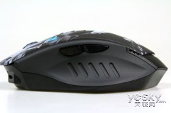 技嘉M8600采用了另类的筒式包装,上部是放置鼠标,下部是放置鼠标的电池、底座、线缆等附件,最下边的是驱动光盘。鼠标采用了左右对称的人体工学设计,尺寸为134.5×72×42mm,显得十分霸气。技嘉GM-M8600鼠标按键板表面覆盖有黑色类肤材质,手感舒适,即使长时间使用手掌出汗,玩家依旧可以对鼠标操控自如。鼠标侧面指槽覆盖了一层黑色塑料,表面进行了咬花处理。