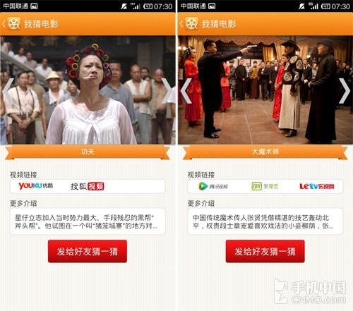 “我猜电影”是一款被网友公认为很“难”很“好玩”的App;是一款为影迷精心定制、用心打造、专门“虐心”的App;是一款为大众普及电影知 识、提高观影品味的App。笔者套用目前非常流行的一段话,那就是“总有一部电影,会让你猜到泪流满面”。感兴趣的朋友,赶快下载“我猜电影”挑战自己的 极限吧。