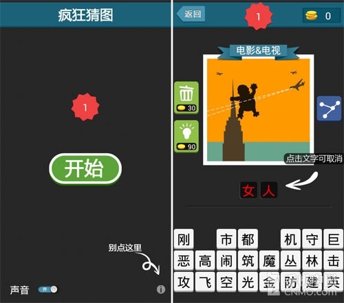 对于“猜”类游戏来说,最重要的就是要贴近大众的生活,而“疯狂猜图”在这一方面就做得非常好。在游戏中,我们遇到的难题几乎都是大家所熟悉的, 类型包罗万象,图片妙趣横生。金刚、后天、盗梦空间、鲁迅、林肯、居里夫人,跟你的好友一起猜猜看吧。