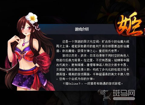 《姬Online》是百纳游戏2013推出的手游巨作。游戏以三界魅惑之女-魔姬的故事为背景,描绘了一个恢弘的修仙世界。首次提出“异元次空间”的理念,串联了中国历史、武侠小说、日本动漫等元素,在游戏中玩家将会体验到历史和二次元经典人物混搭的角色设定。