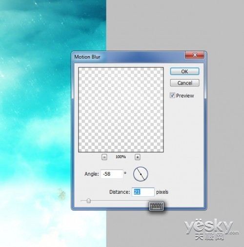 按下Ctrl+J复制一次杂点图层,然后设置运动模糊效果(滤镜—模糊—运动模糊),如图所示。