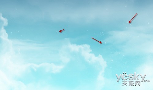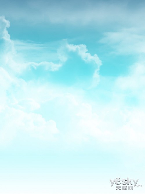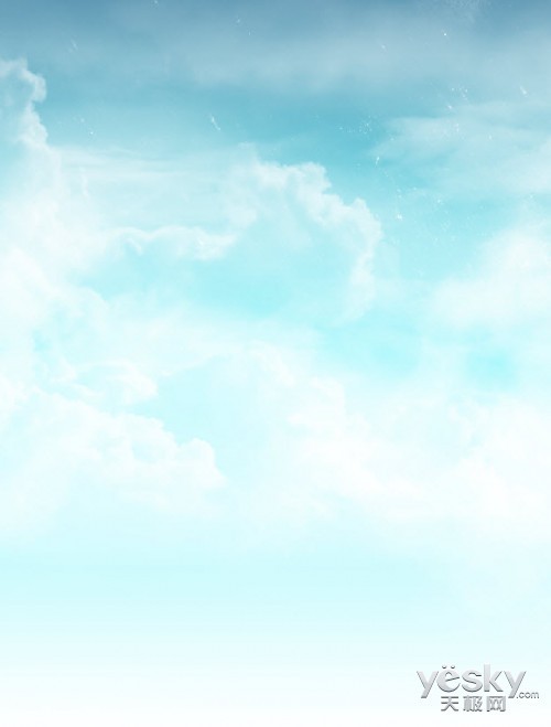 现在创建一个新图层,取名为“云”,用之前下载好的云朵笔刷在刚才的渐变背景上画一些云。