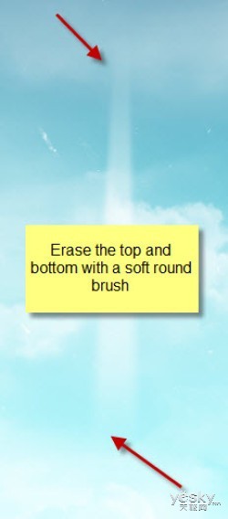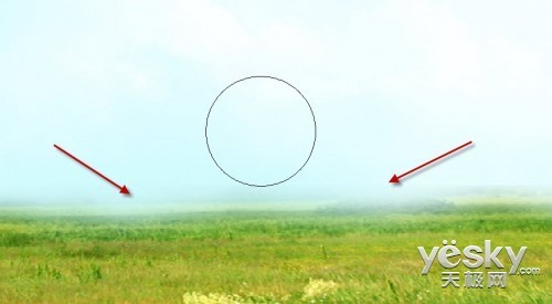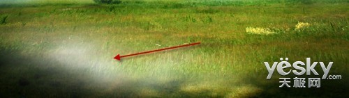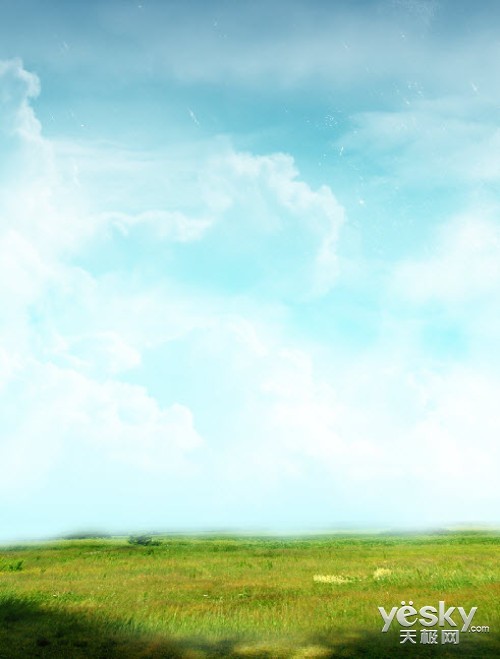 将剪切下来的草地部分粘贴到背景中,将位置调整到画面底部,并用大尺寸的柔软橡皮擦工具清理顶部边缘,使它们和背景融合。