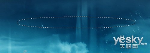 如下图所示,创建一个新图层,使用羽化值为10px的椭圆选框工具创建一个椭圆选区,如图所示。