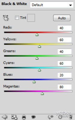 选择含有塔元素的图层,在图层面板中单击“创建新的填充或调整图层”按钮,选择“黑白”,参数设置参考下左图所示。创建“色彩平衡”调整图层,参数设置参考下右图所示。