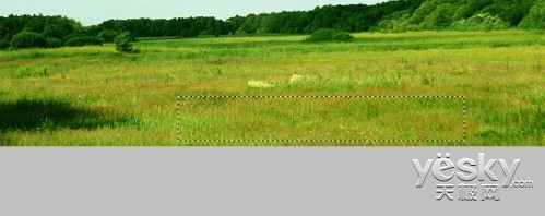 现在,让我们添加一些草地元素,在photoshop中打开草地素材,使用选择工具选择下图所示的草地部分。