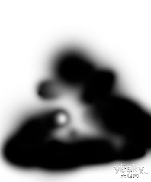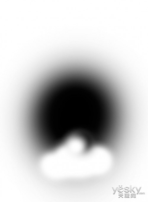 创建一个新图层,填充白色,用黑色的柔角画笔画出下图所示的阴影,然后设置图层的混合模式为“滤色”。