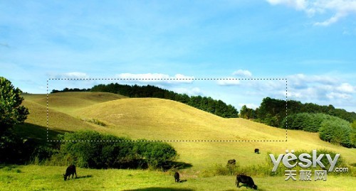 在photoshop中打开山丘素材,使用选择工具选择山岳部分,然后复制,如图所示。和前面选择草地的步骤类似。