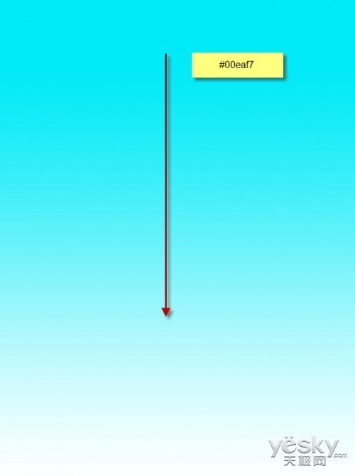1、 创建一个新文件,大小为900像素×1200像素,将背景图层为填充白色,创建新图层,使用渐变工具由上至下拖动鼠标,填充一个从#00eaf7到透明的线性渐变效果,如图所示。