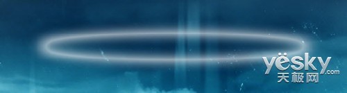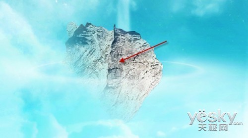 将这个光环移动到漂浮岛屿位置上方,用自由变换工具来调整大小,并删除应该被岛屿遮蔽的部分,如图所示。
