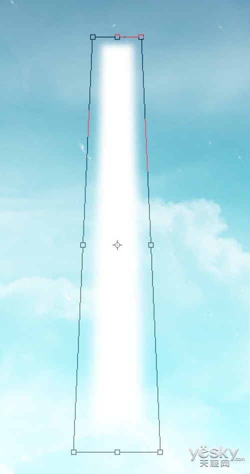 选择菜单“编辑—变换—透视”,将白色模糊的光柱设置为透视效果,如图所示。