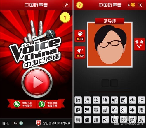 《中国好声音》第二季正在如火如荼地进行当中,作为国内一档大型综艺选秀节目,《中国好声音》的收视率屡创新高。我们暂且先不说这档节目到底如 何,与之有关系的应用可是有着不少,不过全都属于山寨作品,而接下来笔者要为大家介绍的这款名为“好声音疯狂猜”的游戏可是《中国好声音》的官方游戏哦。