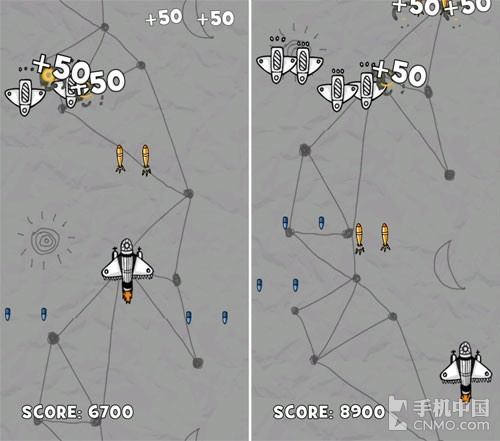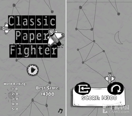 基本的黑白配色,加之铅笔画风格,使得本作的游戏画面看起来与微信打飞机如出一辙,并没有太多的不同。不过仔细试玩之后笔者才发现,本作的飞机 打起来相当的单一,不但自己的飞机火力不够强悍,就连敌方的飞机也全部长成一个样子,没有任何的新意。除了随着游戏的进程,整体速度加快之外,也就没有什 么值得一提的了,表现算是中规中矩吧。
