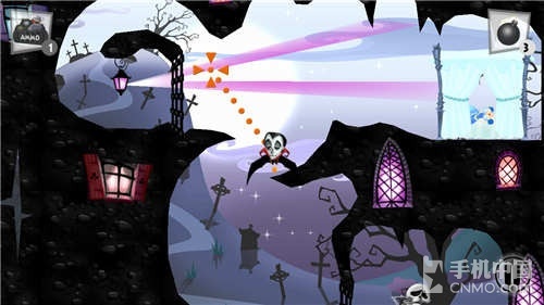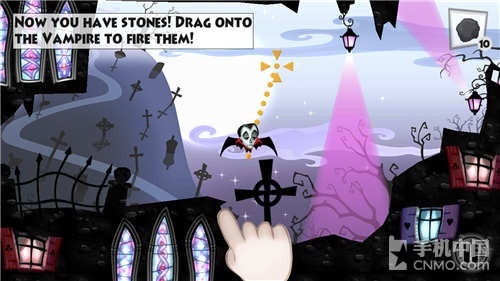 作为昼伏夜出的吸血鬼,玩家要用捡到的石头砸坏路灯,或者用炸弹炸开障碍物,目的就是要避免被灯光照到,每关只能允许3次受伤,太多的话就会死掉了。玩法就是这么简单,最终目的刚才笔者也谈到了,就是要躲开层层障碍来到美女公主面前即可。