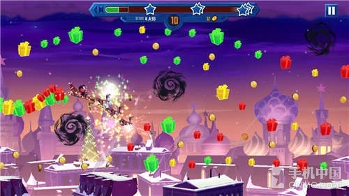 无论哪一个场景下,我们都能看到送给孩子们的礼物在天空中散落了,而玩家的任务就是要驾着马车将这些礼物收集起来,避开空中飞来的邪恶怪物,通 过烟囱将孩子们的礼物送入家中。操控方法很简单,玩家只需一根手指即可操作,需要马上俯冲下来收集礼物或者发放礼物的时候,只需按住屏幕的任意一个位置即 可。
