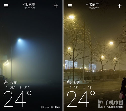 与此同时,主屏幕Widget插件也是“雅虎天气”的特色之一,玩家可以根据自己的视觉需求去选择适合的插件。在选择插件的时候,用户还能够自 定义是否同时显示当前地理位置的风景照。对于喜欢极简风格的人们来说,笔者还是建议用完全透明风格的插件吧,这样看起来会更唯美一些。