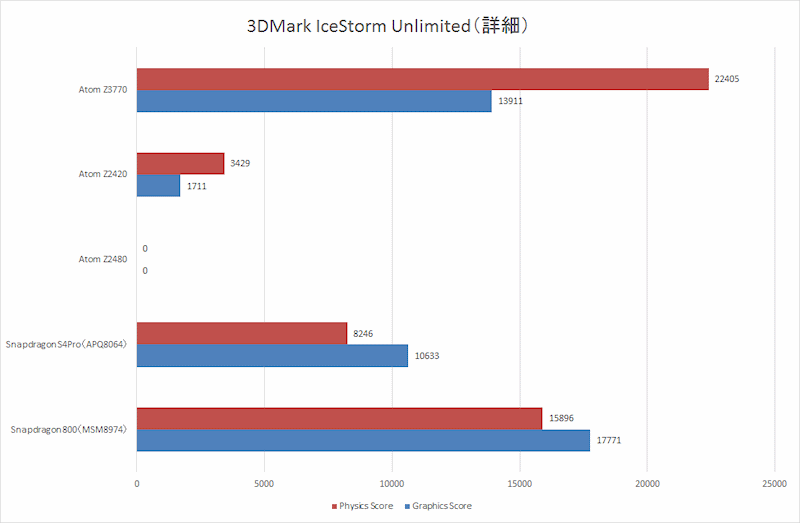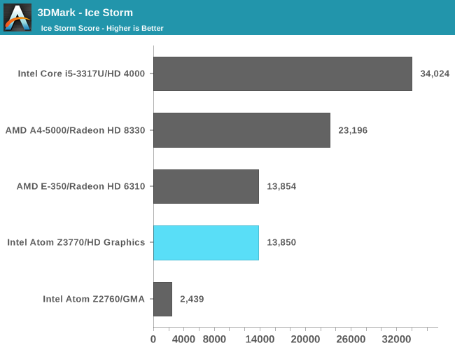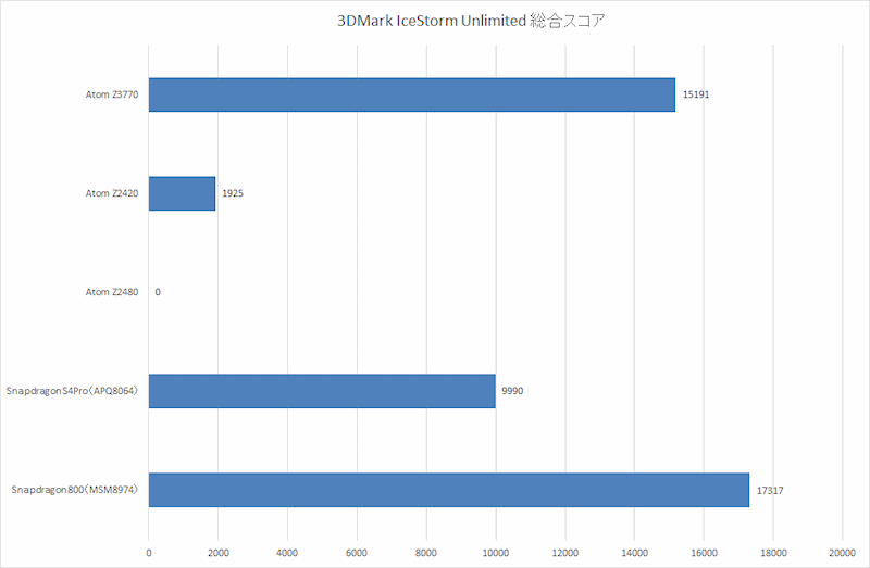 3DMark Ice Storm Ulimited:第一次看到它的成绩,Z3770不如骁龙800,仍然是GPU太弱的结果。