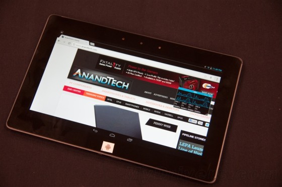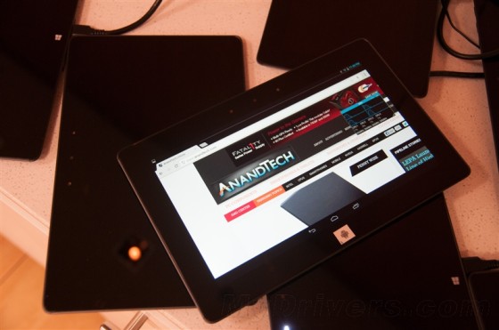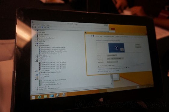真正的新Atom平板还要等一段时间,不过Intel提供了一个参考设计(Bay Trail FFRD)供预览,配备10寸2560×1440屏幕、2GB LPDDR3-1066内存、64GB eMMC存储、Windows 8.1 32位操作系统,规格还是很高的。