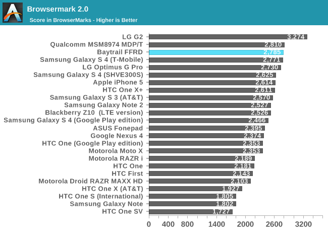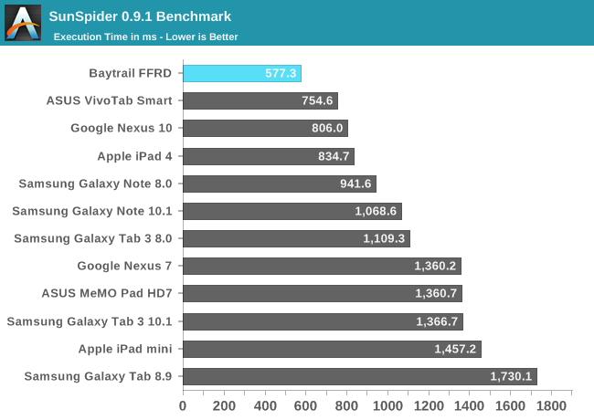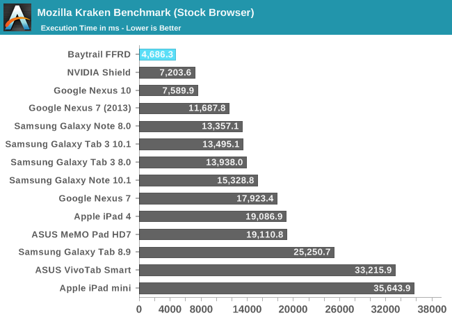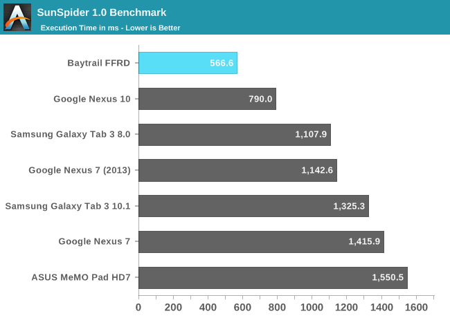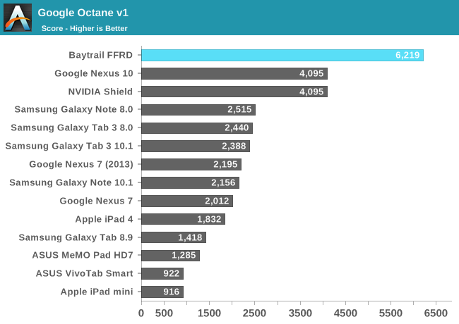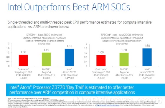 Intel宣称Silvermont架构的性能可以灭掉任何ARM方案。从测试成绩看,至少安卓上做到了,ARM A15、高通Krait 400都不是它的对手。可以说,Bay Trail平板机将会有最好的移动CPU性能。