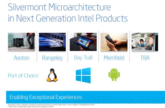 Bay Trail平台在消费机领域分为四大板块,今天发布的是其中三块,用于智能手机的Merrified要到今年底明年初才会诞生。