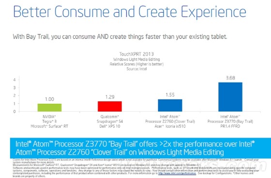 多媒体性能是上代Z2760的两倍多,不过注意:ARM阵营参战的是老一代T3、S4