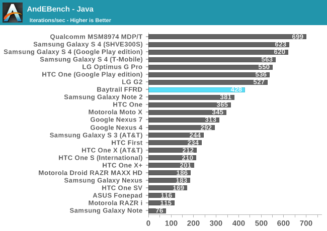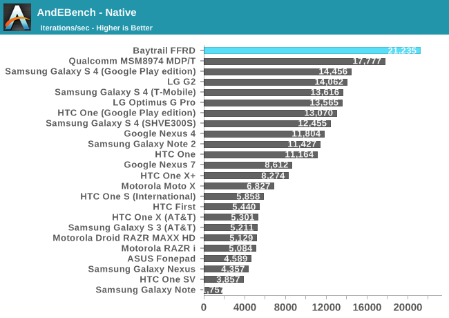 Z3770简直亮瞎狗眼,大部分时候都遥遥领先,AndEBench Java性能一般般还可以归咎于安卓系统的效率,毕竟原生性能也是无敌的。