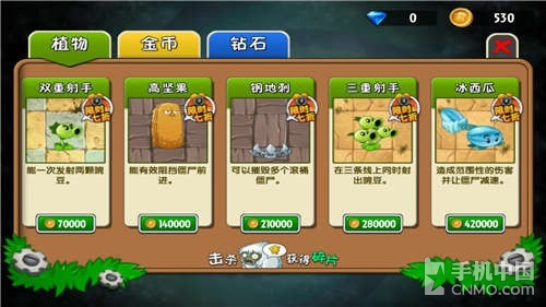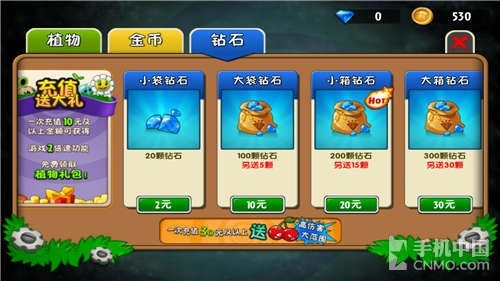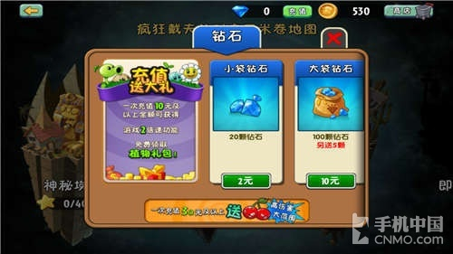 问题又来了,难道游戏中所获得的金币就没有意义了吗?答案是否定的,游戏中玩家所获取的金币也是可以兑换一些植物的。但较难的游戏难度,让我们 每一关中积攒下来的金币屈指可数,而想要兑换的植物又是动不动几万几十万的金币分值,这简直就是天方夜谭啊。这个时候怎么办?我们依然有办法,那就是用钻 石来兑换金币,而钻石又是怎么来的呢?刚才笔者说了,给钱!