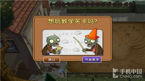 游戏开始之后,会有个小小的教学关卡,在这里我们可以选择开启这个教程或者直接跳过。笔者强烈建议大家跳过这个教学关卡,其所耗费的时间相当 长,没耐心的玩家还是算了吧,当然这只是针对于接触过上一代PVZ的玩家。不过,即便我们选择跳过关卡,也是先要占用一点时间去玩上一关的。