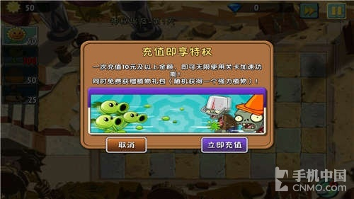 笔者本以为Android版的PVZ2多了一个“快进”的玩法,要比iOS版的高端大气上档次。在我想第二次赞美宝开的时候,我才发现我错了。这个“快进”只允许玩家免费用一次,如果还想继续使用的话,那就请掏腰包的。