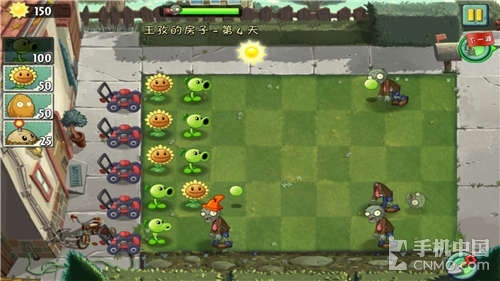 值得一提的是,在PVZ2中,关于选择植物的那一栏,由上一代作品的屏幕上方改为了现在的屏幕左侧。笔者认为这样的好处有两点,第一是缩短了手 指的操作行程(Android手机的屏有多大,地球人都知道),使得左右手更加方便快速的配合,第二个好处在于游戏画面可视面积的增大。在视觉效果方 面,PVZ2相比一代作品来说有了不小的进步。