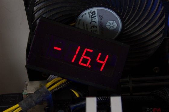 首先4960X在烧机15分钟之后12V输入电流为16.4A,大约折合196.8W的功耗,这时候供电温度大约在45度。