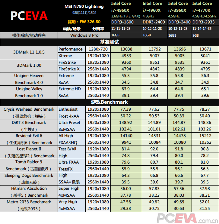 测试显卡使用MSI N780 Lightning,使用Forceware 326.80 beta驱动。