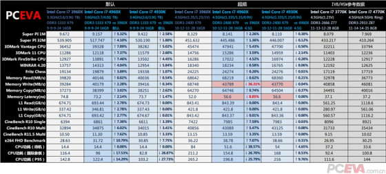 性能方面,IVB-E相比SNB-E同频部分项目提升3-7%的情况和IVB相比SNB很类似,而默认的4960X比3960X提升100MHz的频率,性能提升幅度也会更加多一些,4930K也比3930K默认频率提升100MHz,4820K则相比3820多了不锁倍频随意超频的功能。