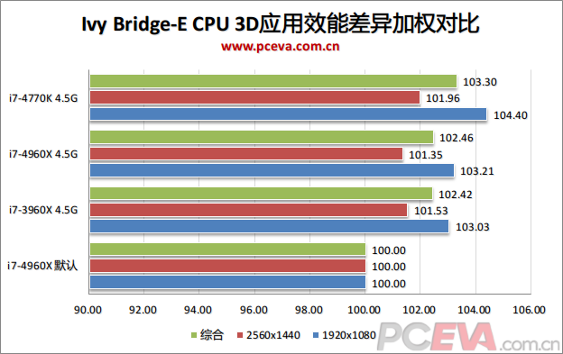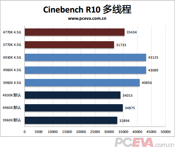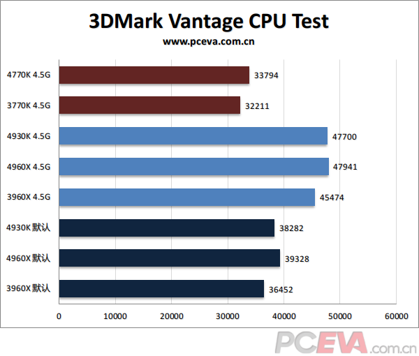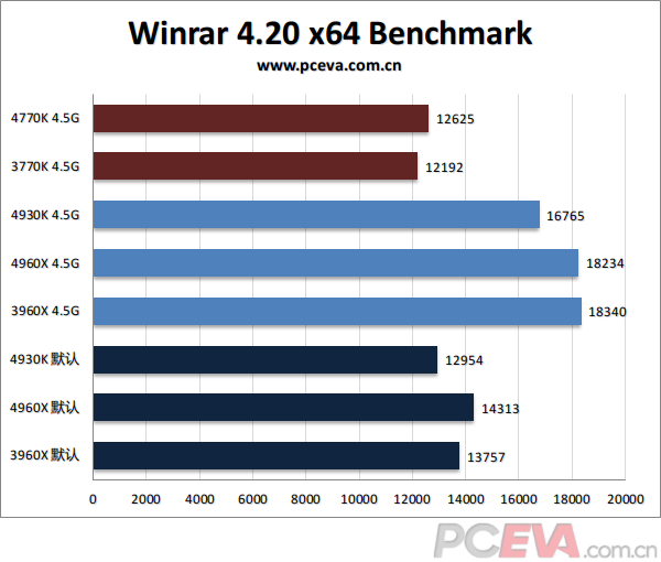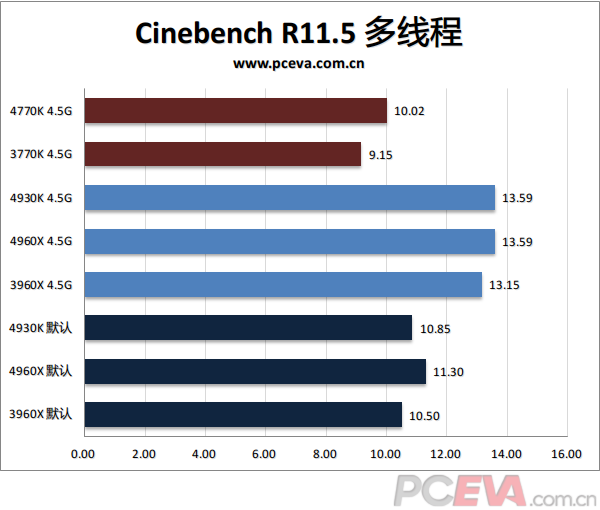 以下我们将对比默认设置下3960X、4930K、4960X的成绩,以及大家都超频到4.5G及DDR3-2400的同频对比。另外我们在测试中还会加入3770K、4770K的数据对比。