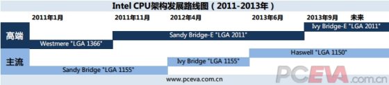 从Roadmap上,我们可以看到,相对于主流市场,高端市场的Sandy Bridge-E横跨了三代处理器。