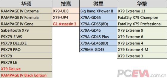 按Intel的说法,目前各主板厂商,如华硕、技嘉、微星、华擎、精英、EVGA等X79主板,均已经可以支持IVB-E处理器。以下我从主板厂商官网处理器支持列表页面找到目前可支持IVB-E处理器的主板,截至9月12日。目前只有技嘉的X79主板尚未能全系列支持IVB-E处理器,同时Intel的原厂X79主板也不打算更新BIOS支持IVB-E。