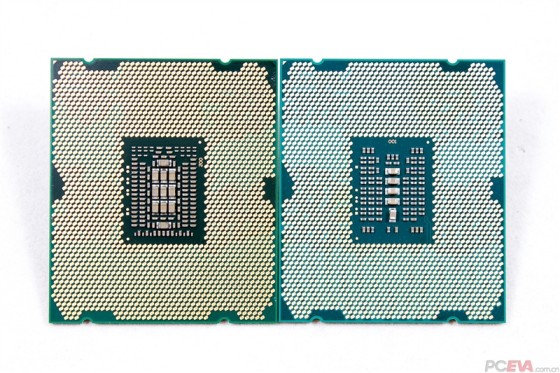IVB-E背后的电容比SNB-E少一些,因为它是原生6核心,晶体管数更少。背面的LGA2011触点没有变化,两者完全是兼容的。