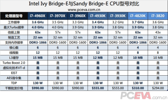 Ivy Bridge-E处理器规格点评
