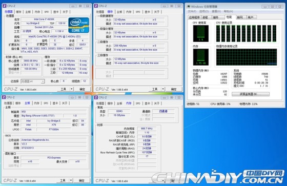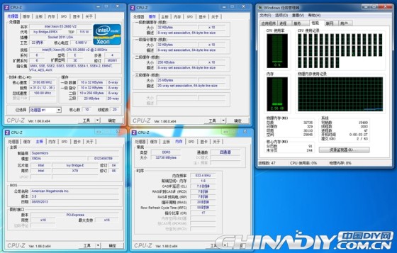测试的两个配置除了CPU和主板之外其余硬件我们尽量保持一致,不过由于组建4通道内存组合的需要,双路E5-2680 V2平台将使用8条ECC DDR3内存测试,可惜频率最高仅可以设置在1066MHz下开机;而i7-4930K则可以使用4根普通DDR3内存运行,主板默认频率为1333MHz。
